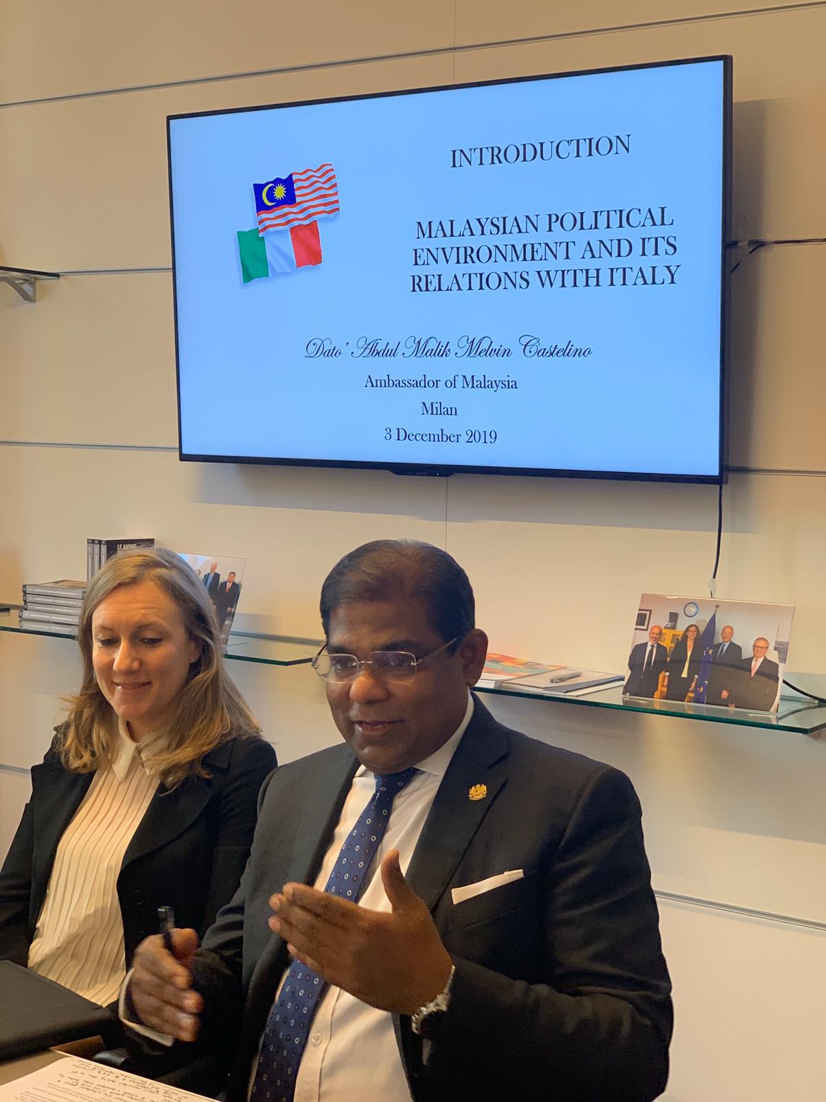 On December 3rd 2019, the Italy-ASEAN Association organized a working Breakfast on Malaysia in its Milan office at the presence of H.E. the Ambassador Abdul Malik Melvin Castelino